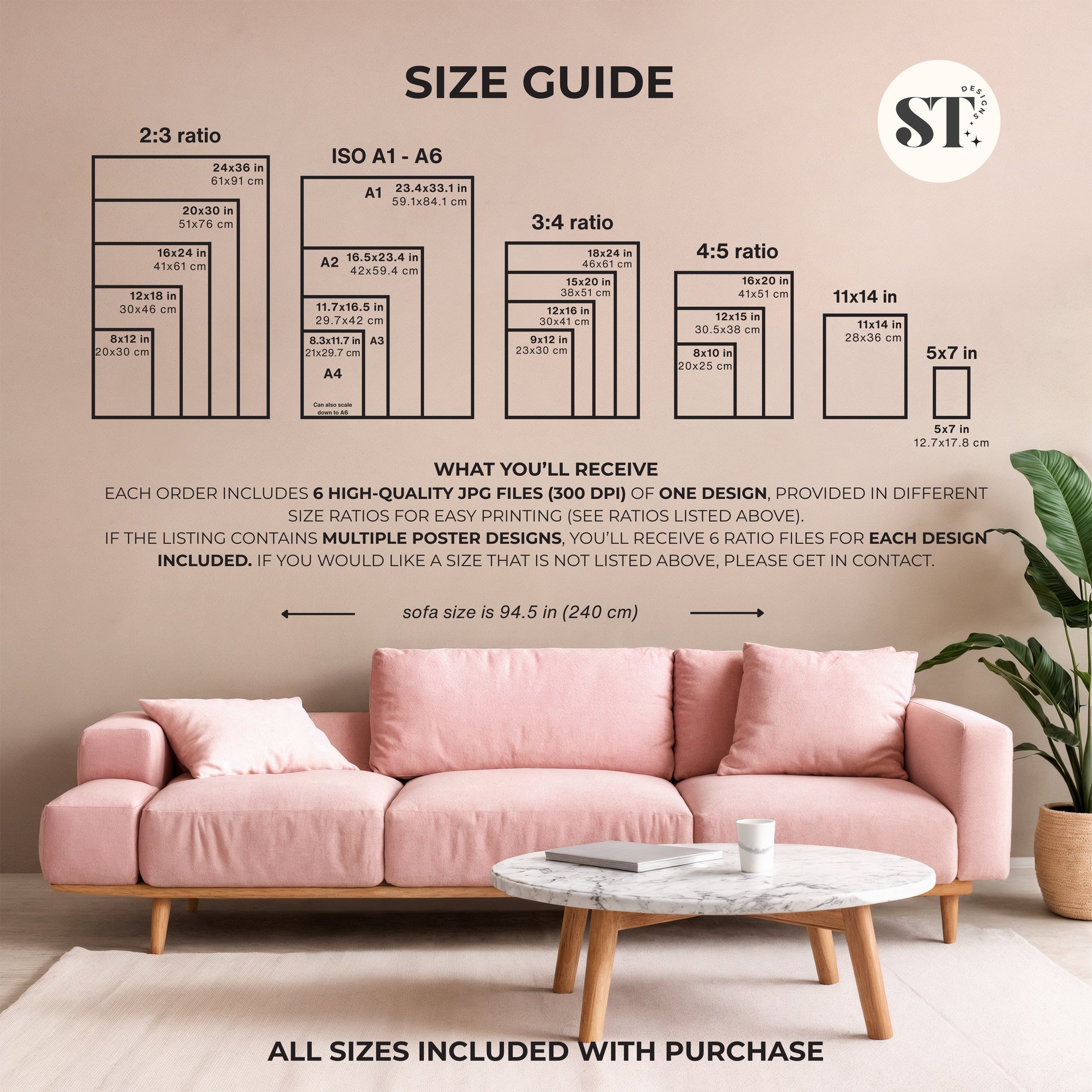 • Each file is provided in multiple aspect ratios for easy printing at common poster sizes:
